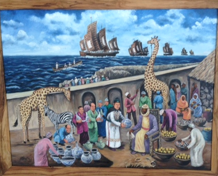 Painting of Zheng He meeting the sultan of Zanzibar.