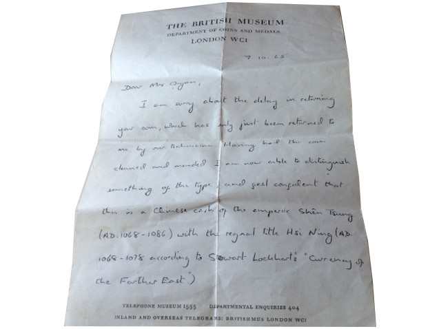 Song dynasty 11th century coins found at Kajengwa Tanzania.The next to it is a British museum letter. A confirmation of early Chinese trade routes to East Africa.